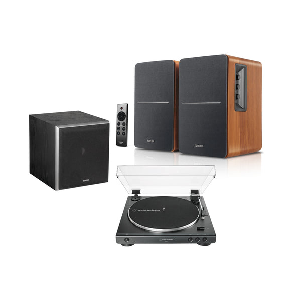 Tornamesa Audio-Technica LP60X + Parlantes Edifier R1280DBs Negro + Subwoofer T5 | Bundle Experiencia Vinilo Emmett