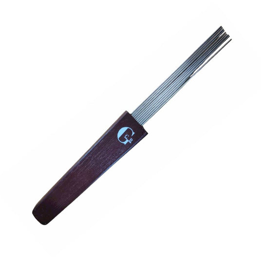 Peineta para güiro con mango de madera, ideal para obtener un sonido nítido y definido.Fabricada en madera resistente, ofrece un agarre cómodo y un peso liviano para una interpretación precisa.Longitud total de 19 cm, perfecta para...Precio $12,500 CLP -