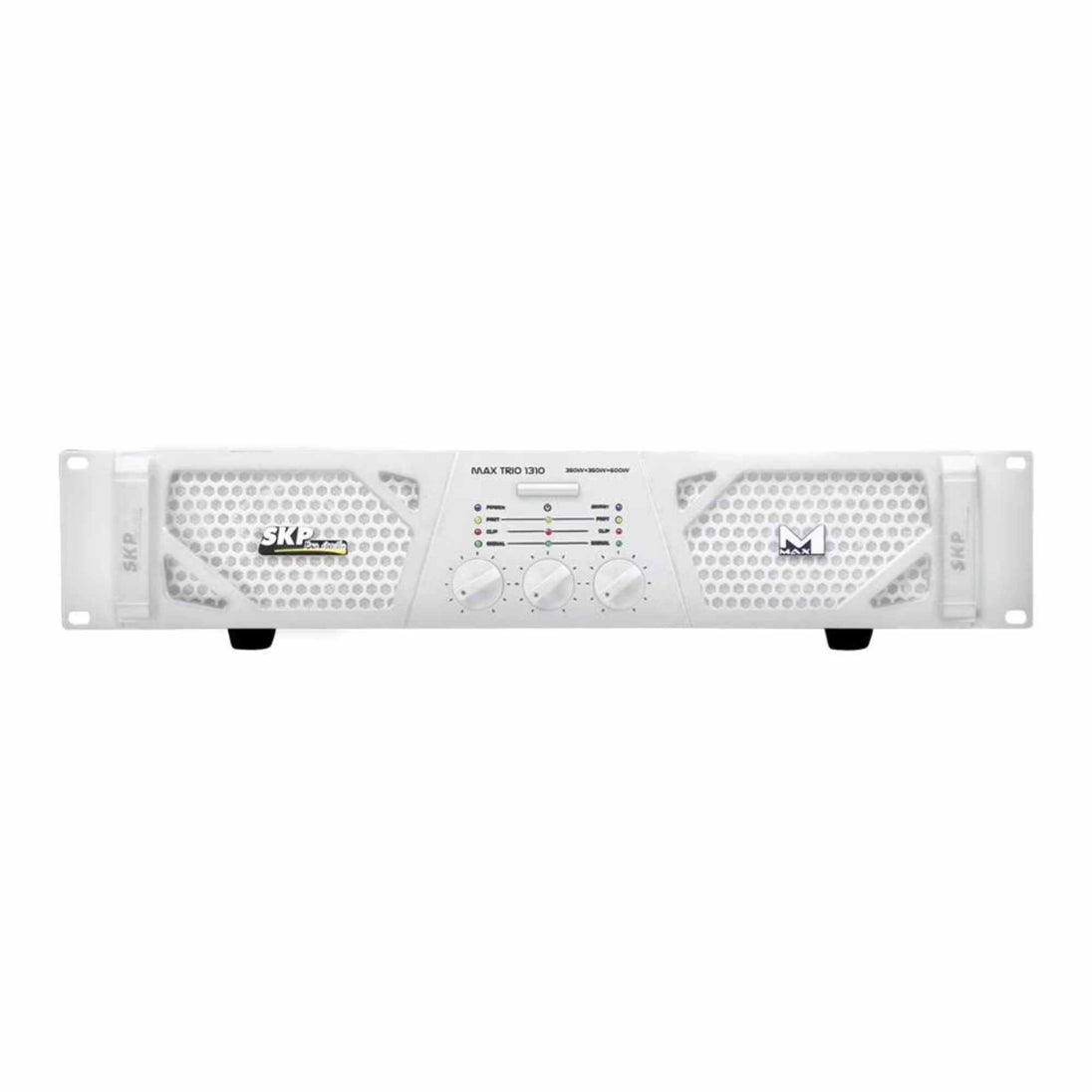 El SKP Max Trio 1310 es un amplificador de potencia tipo AB, diseñado con estructura metálica resistente y duradera para diversas aplicaciones de refuerzo sonoro. Ofrece tres canales: dos para parlantes estéreo y uno dedicado a subwoofer, entregando potencia estable y sonido claro en distintas configuraciones. Cuenta con sistema de enfriamiento mediante dos ventiladores de doble velocidad y protecciones avanzadas contra cortocircuitos, sobrecorriente, DC, AC y sobrecalentamiento, garantizando un funcionamiento seguro y confiable.
