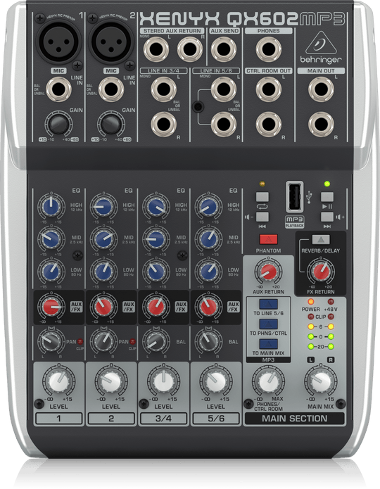 El Behringer Xenyx QX602MP3 es un mezclador compacto de alto rendimiento con 6 entradas y reproductor MP3 integrado. Ideal para presentaciones en vivo, ensayos, podcasting y eventos, ofrece sonido de calidad profesional gracias a sus preamplificadores...Precio $120,000 CLP -