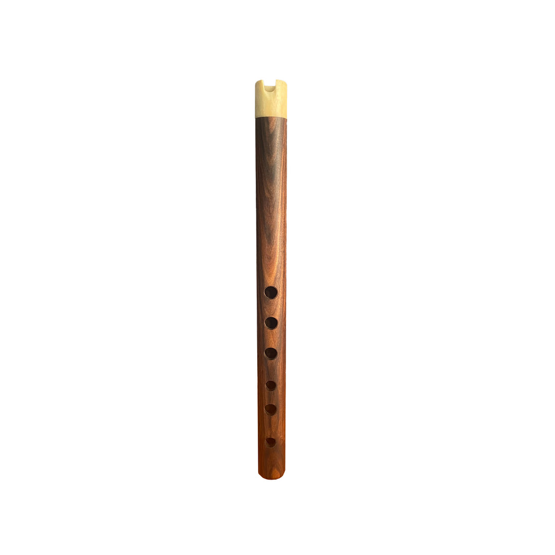 Quena Castellón de madera de Jacarandá con boquilla de hueso y funda.