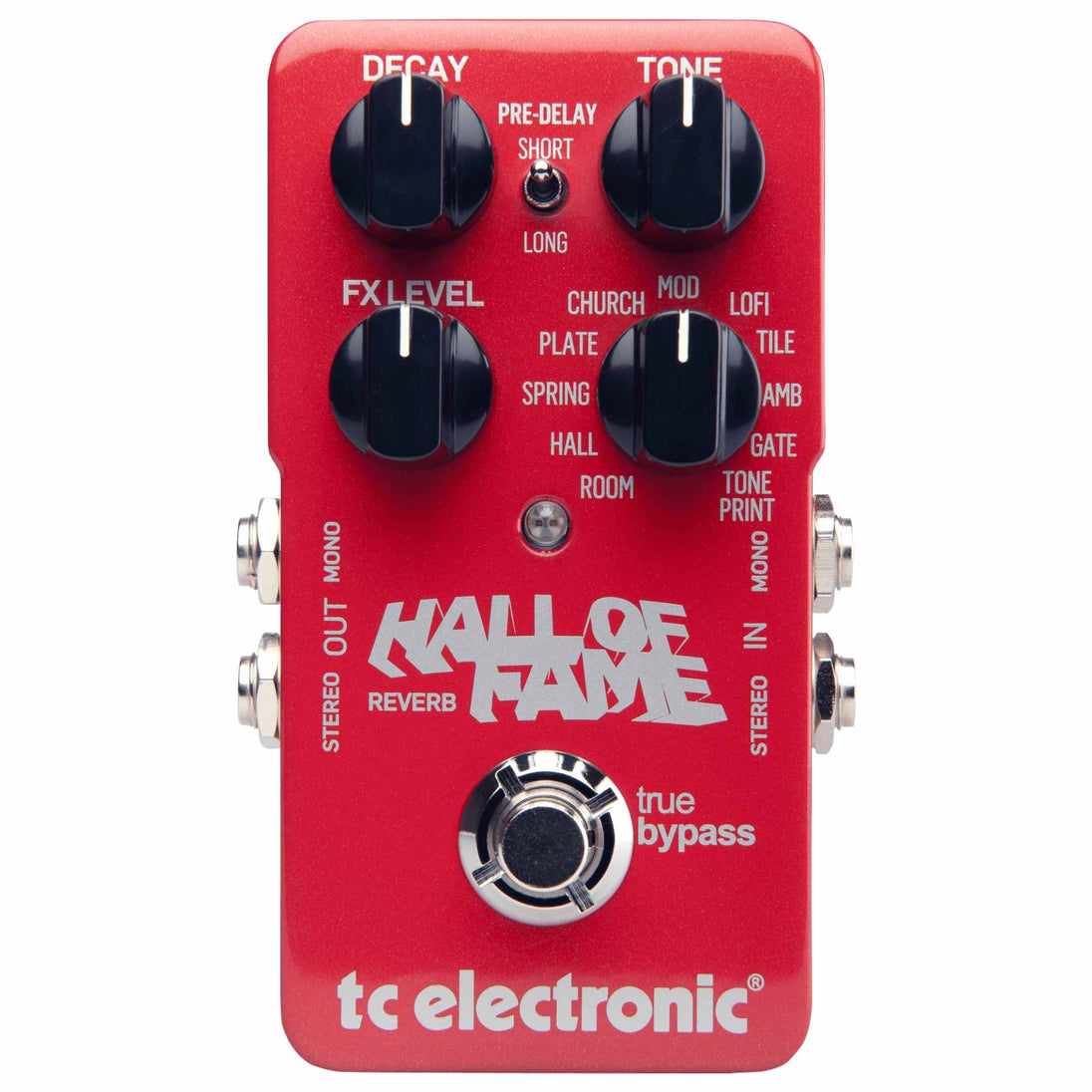 El TC Electronic Hall of Fame Reverb reúne los icónicos sonidos de reverb que han marcado la música en las últimas décadas, utilizados por artistas de talla mundial como Michael Jackson, Dire Straits y Lady Gaga. Con 10 tipos de reverb diferentes, desde los clásicos spring y plate hasta reverbs expansivos tipo church, este pedal ofrece una paleta sonora completa para cualquier estilo y situación.