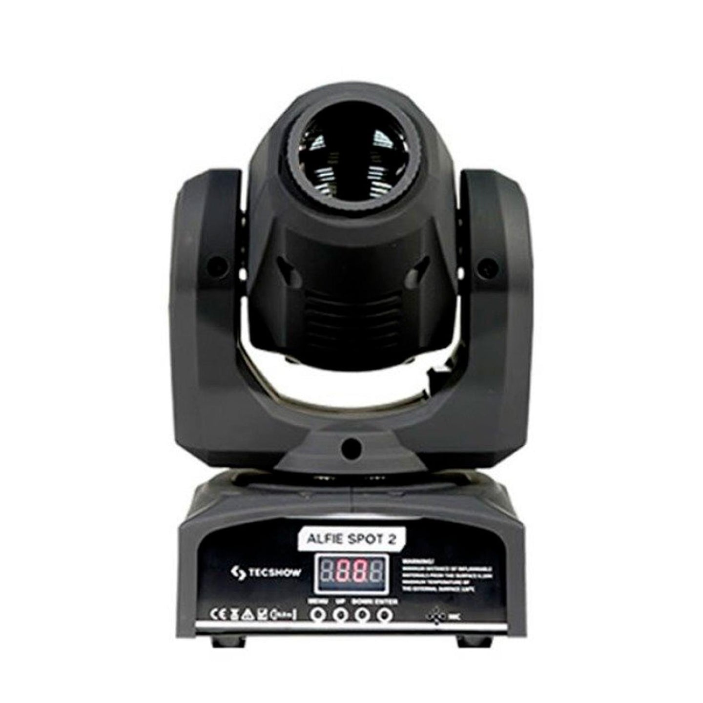 Alfie Mini Spot 2 es un cabezal móvil tipo spot que tiene un LED CREE® blanco de 35W y cuenta con un ángulo de haz de 12º. La unidad se destaca por su diseño compacto, ideal para aplicaciones donde la portabilidad es un factor determinante. El equipo tiene reposicionamiento automático de Pan y Tilt, una rueda de 7 filtros dicroicos + abierto con efecto arcoíris, otra rueda con 7 gobos rotativos y un dimmer lineal 0-100%. Con movimientos rápidos, efecto estrobo, 2 modos DMX y 4 modos de operación.