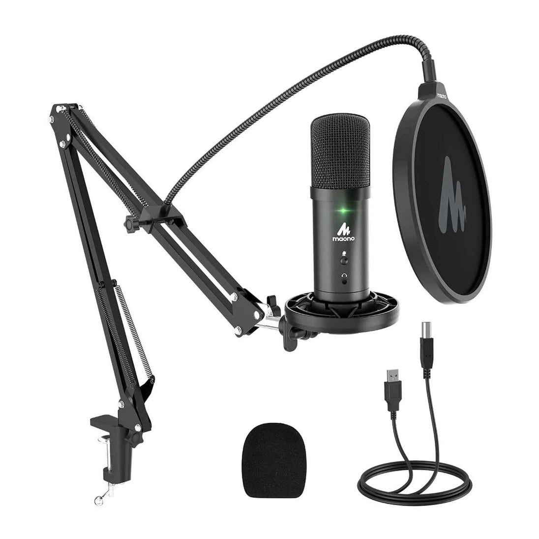 El Maono AU-PM401 es un micrófono condensador USB diseñado en formato de kit “todo en uno” para grabaciones profesionales con calidad de estudio. Gracias a su chipset de sonido de alta resolución, ofrece una frecuencia de muestreo precisa que garantiza una reproducción clara y fiel, ideal para voces, instrumentos y transmisiones en vivo. Su patrón polar cardioide captura con mayor sensibilidad el sonido frontal, reduciendo ruidos de fondo y mejorando la definición en grabaciones.