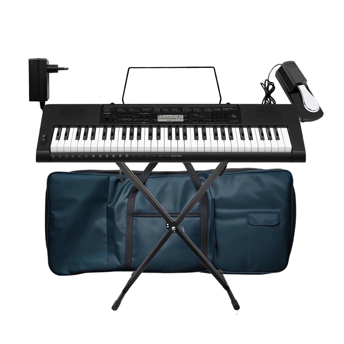 Este completo pack de teclado Casio CTK 3500 incluye todo lo necesario para comenzar a tocar con comodidad y calidad: